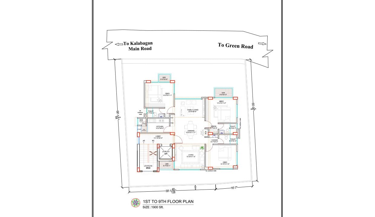 1900Sqft Area