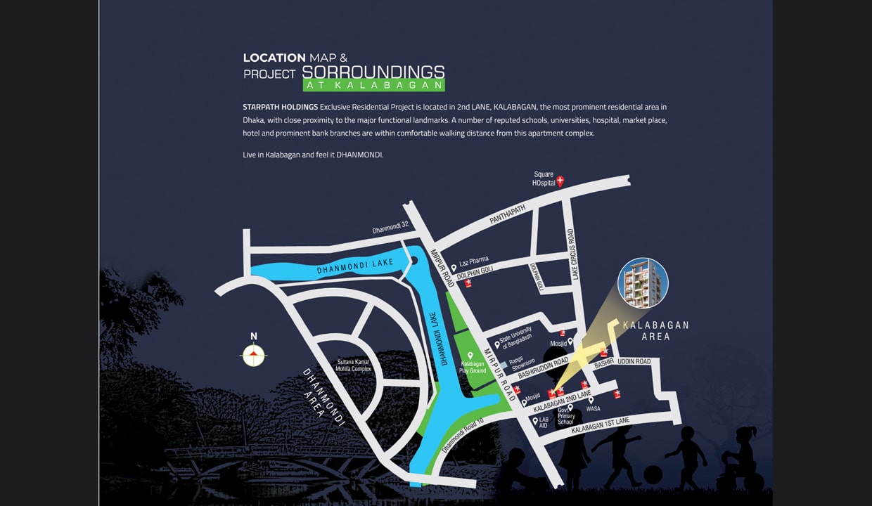 Welcome to SHYAMOL CHAYA A strategic location in the heart of dynamic city. A prestigious address in well-planned, secure and integrated urban enclave that offers dropstep access to working, shopping, dining, entertainment and near natural lake and walkway. Welcome to ultra convenient city living in dhaka. Residential Project at Kalabagan. The luxury apartment have been ingeniously designed with the needs and comfort of contemporary city living in mind. With flexible space that come with a beautiful entrance in units, exclusive finishing and fixtures throughout facilities; life at STARPATH HOLDINGS LTD. will be an exciting and fulfilling experience